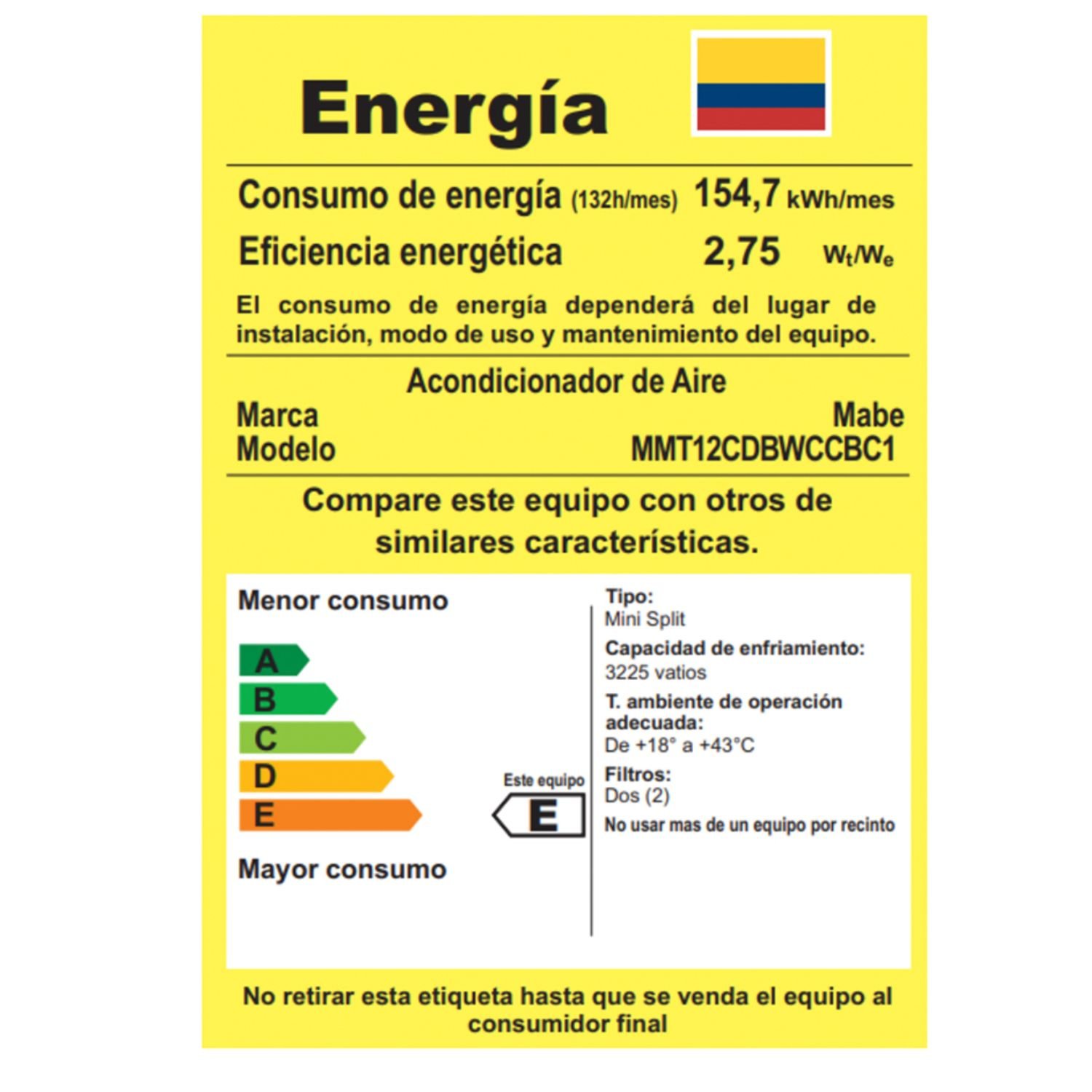 • Capacidad: 12000 BTU