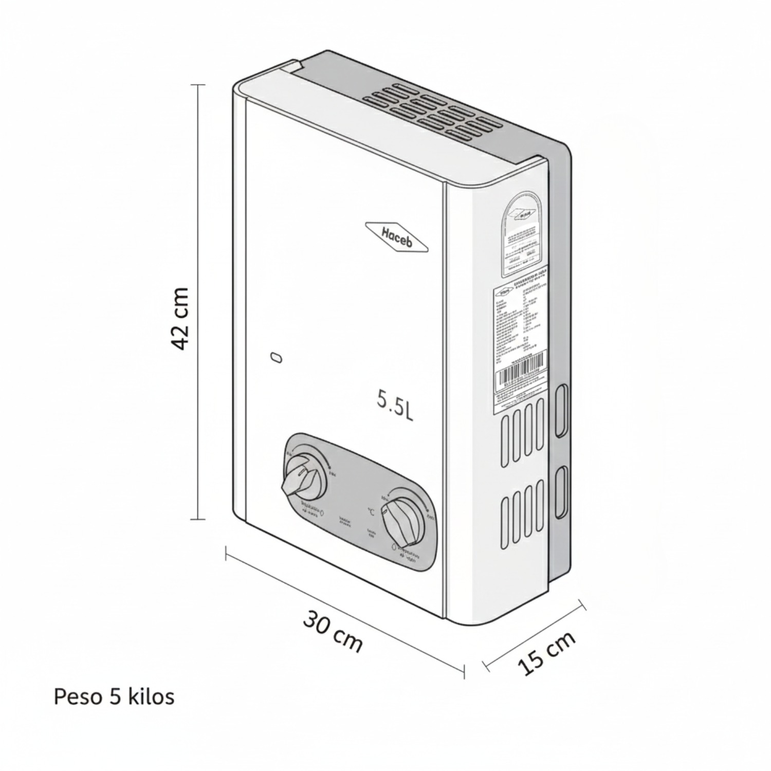 Calentador de Agua Gas Natural 5,5Lt Tiro Natural HACEB Blanco
