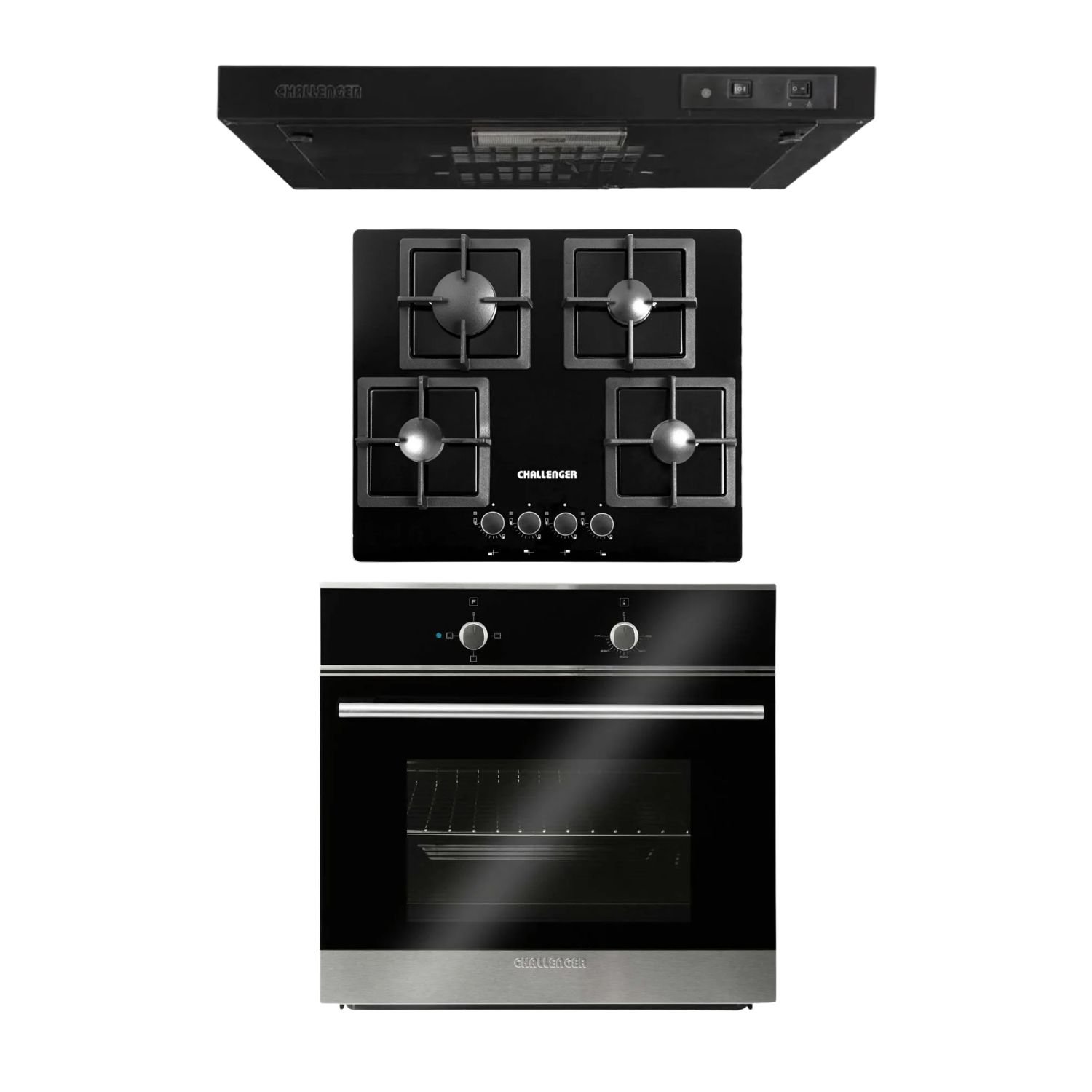 Renueva tu cocina con este completo combo Challenger de empotrar, diseñado para brindarte potencia, diseño moderno y máxima funcionalidad en cada preparación. Campana, estufa en vidrio negro y horno eléctrico en acero inoxidable: la combinación perfecta para un espacio elegante y eficiente.