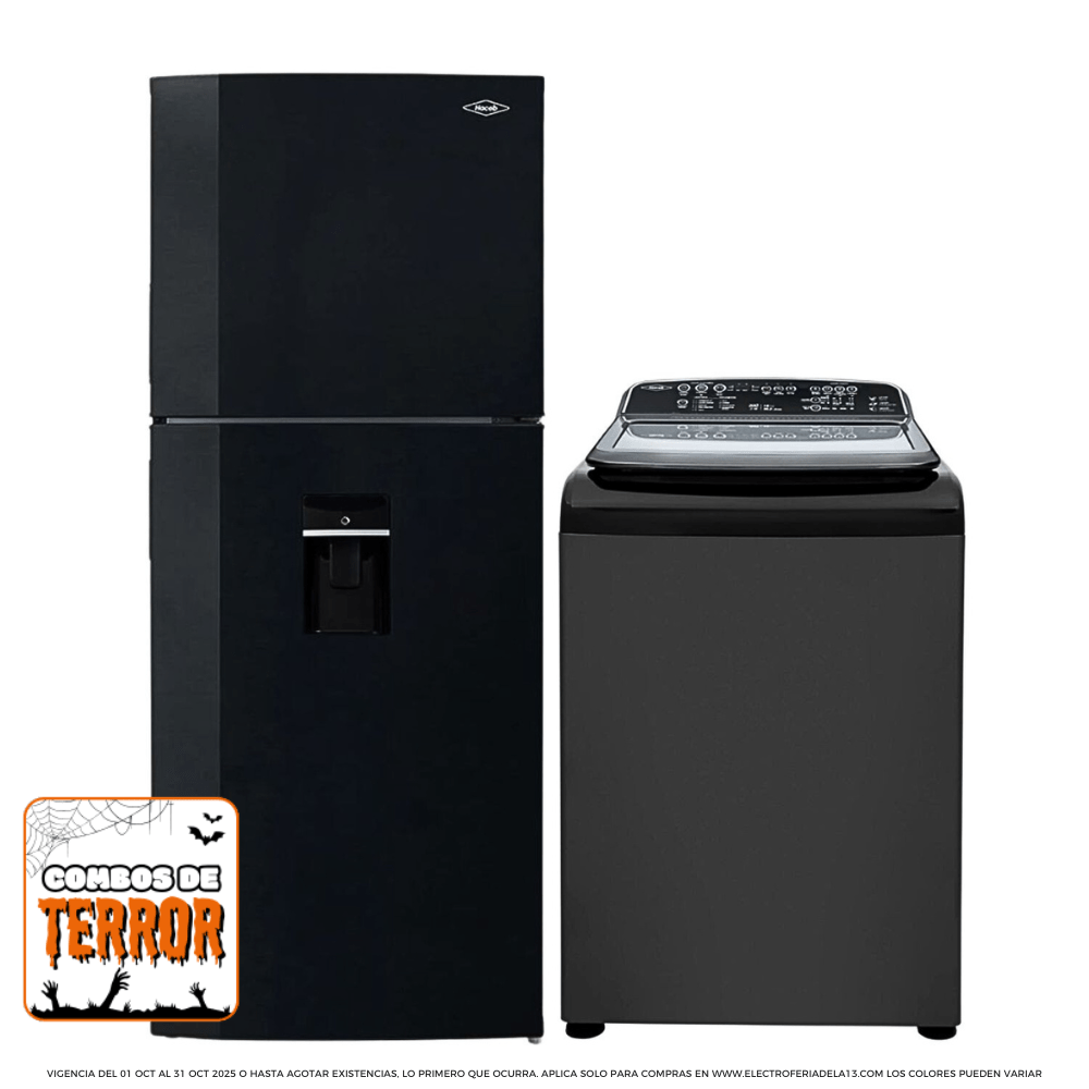 Descubre este combo que une la potencia y funcionalidad de dos electrodomésticos esenciales: una nevera No Frost Haceb de 404 litros en color negro y una lavadora digital de 16 kg en elegante gris oscuro. Perfecto para hogares que buscan eficiencia energética y diseño moderno en cada espacio.