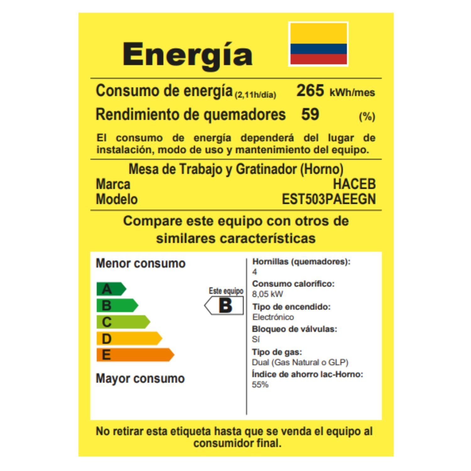 • Tipo consumo energético: B