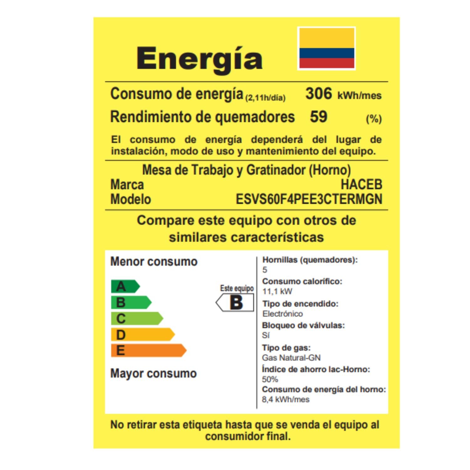 • Tipo consumo energético: B