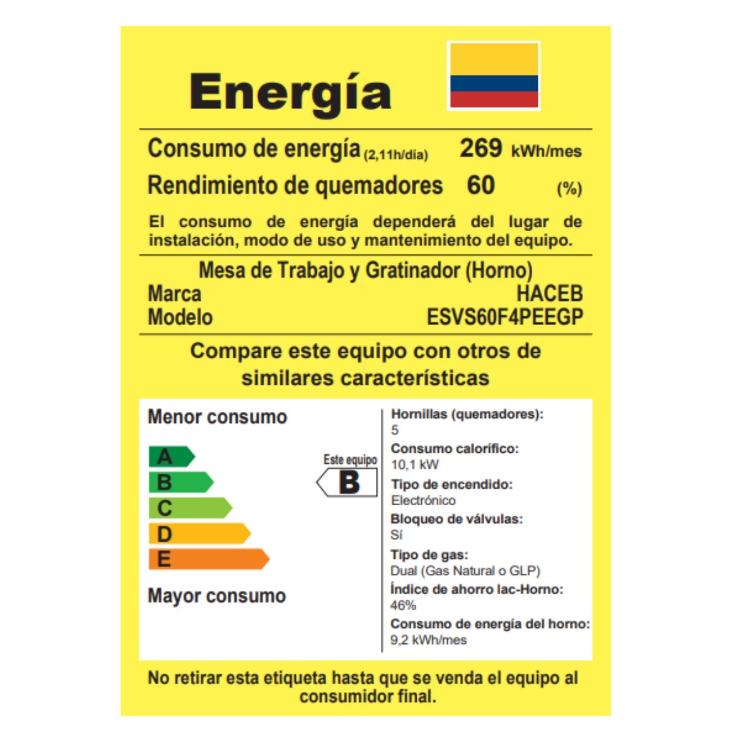 • Tipo consumo energético: B