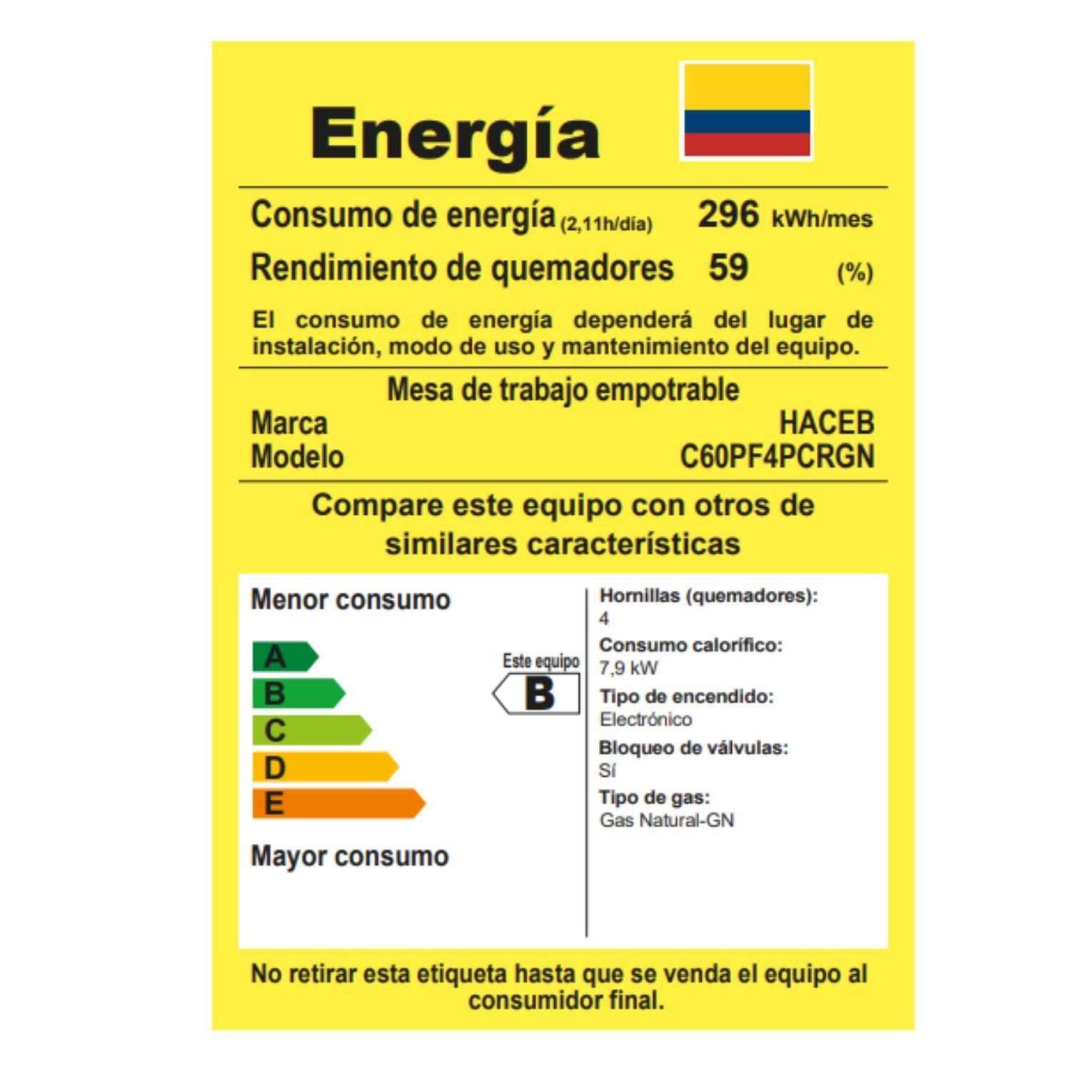 • Tipo consumo energético: B