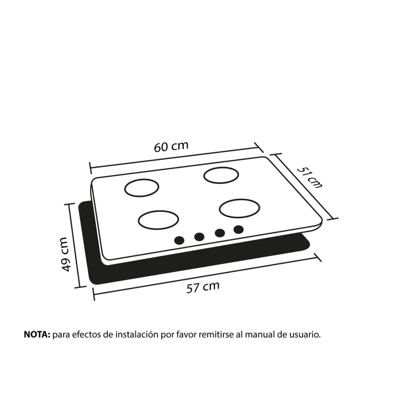 • Dimensiones (AlxAnxProf): 11x60x51 cm