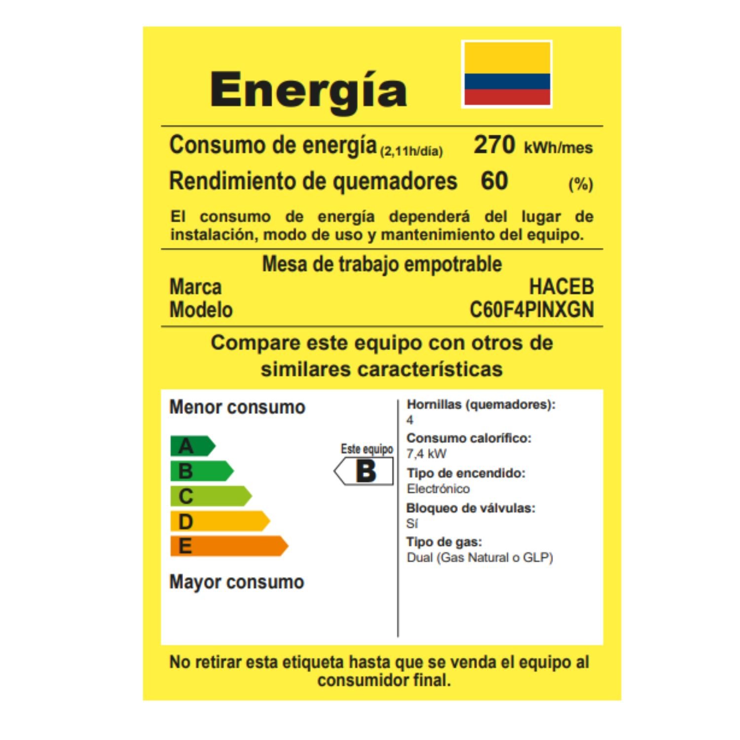 • Tipo consumo energético: B