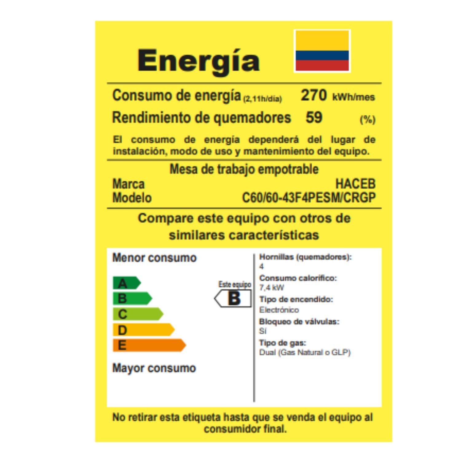 • Tipo consumo energético: B