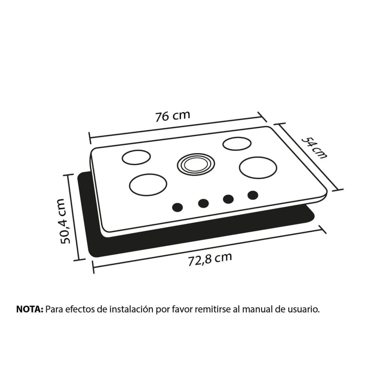 • Dimensiones (AlxAnxProf): 12x76x54 cm
