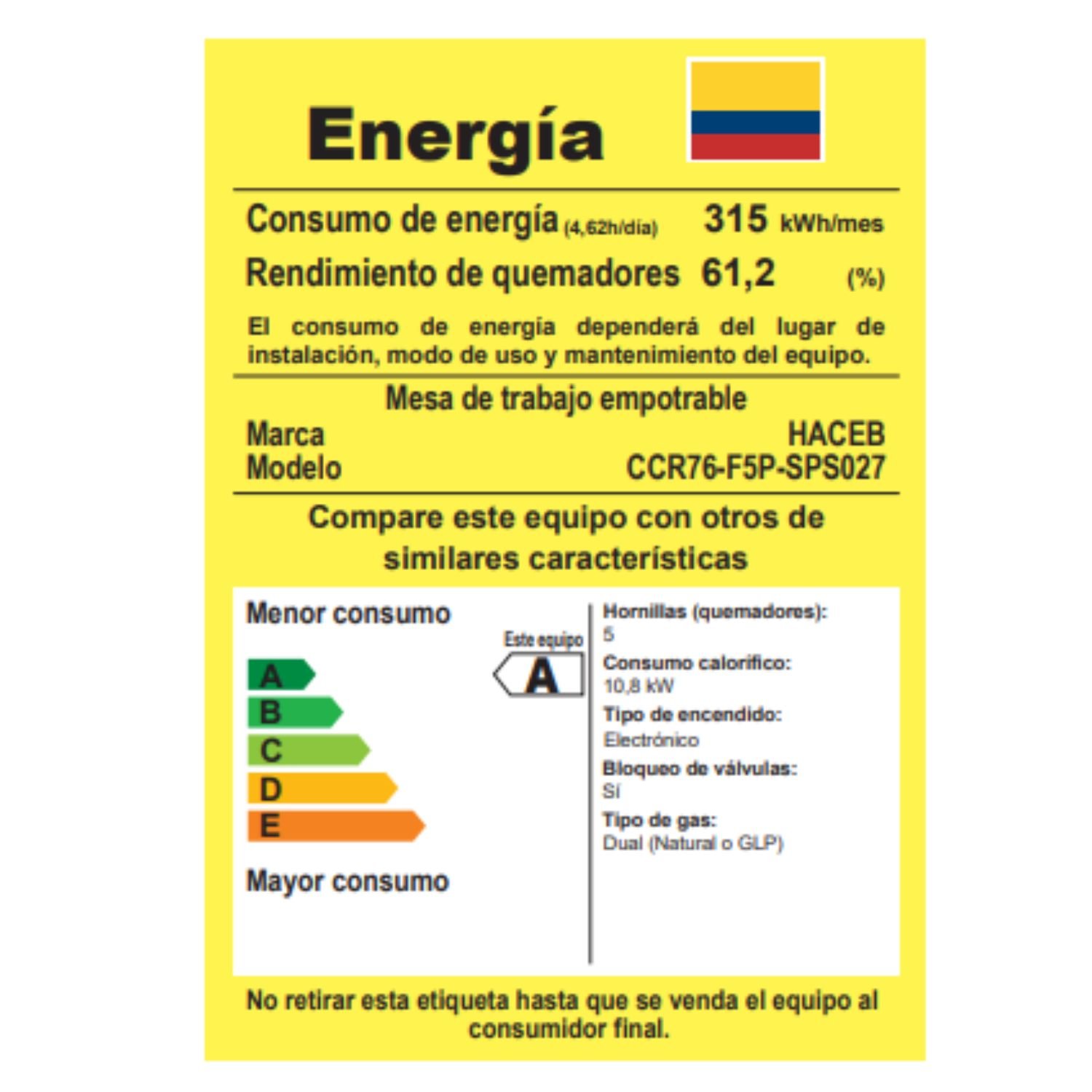 • Número de quemadores: 5