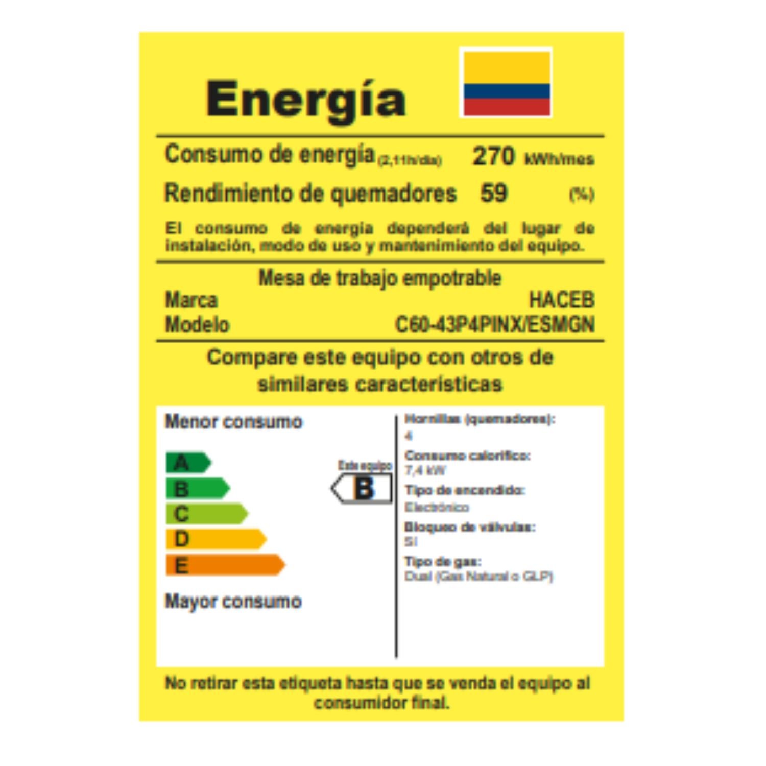 • Tipo consumo energético: B