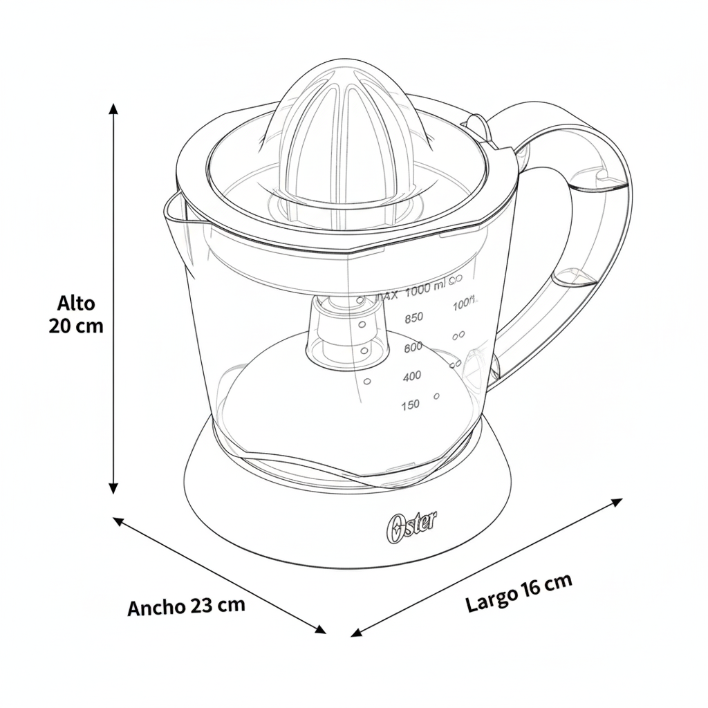 Disfruta de jugos cítricos recién exprimidos todos los días con tu exprimidor de cítricos Oster. Desde limonadas hasta jugos de naranja y pomelo, los conos intercambiables de dos tamaños son ideales para exprimir una variedad de cítricos. Además, la rotación bidireccional automática hace todo el trabajo por ti, asegurando que siempre obtengas la mayor cantidad de jugo de cada pedazo de fruta. El contenedor de 1.0 L también funciona como una jarra, pues cuenta con un mango y una boquilla para verter fácilmente.