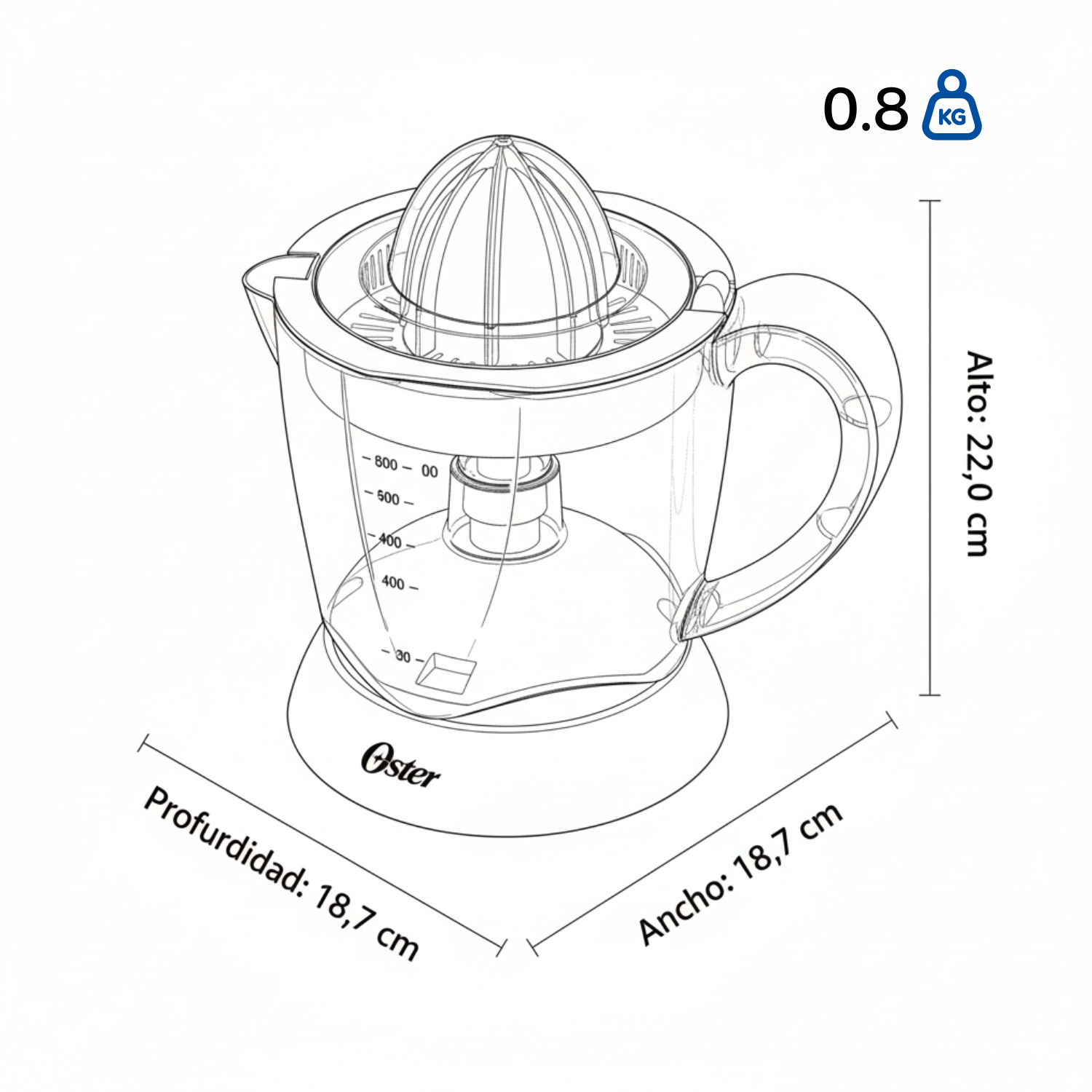 • Colador que incluye permite la separación de los residuos y zumos