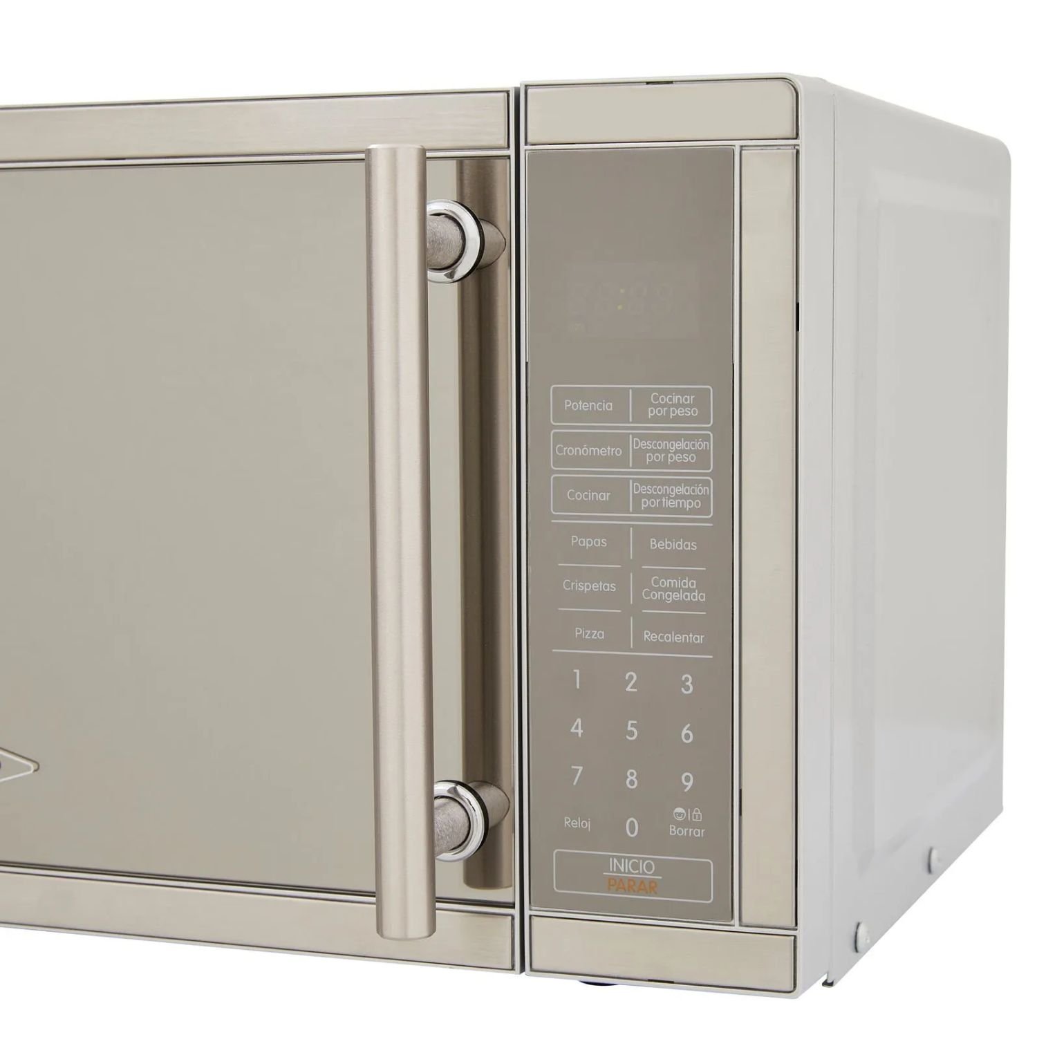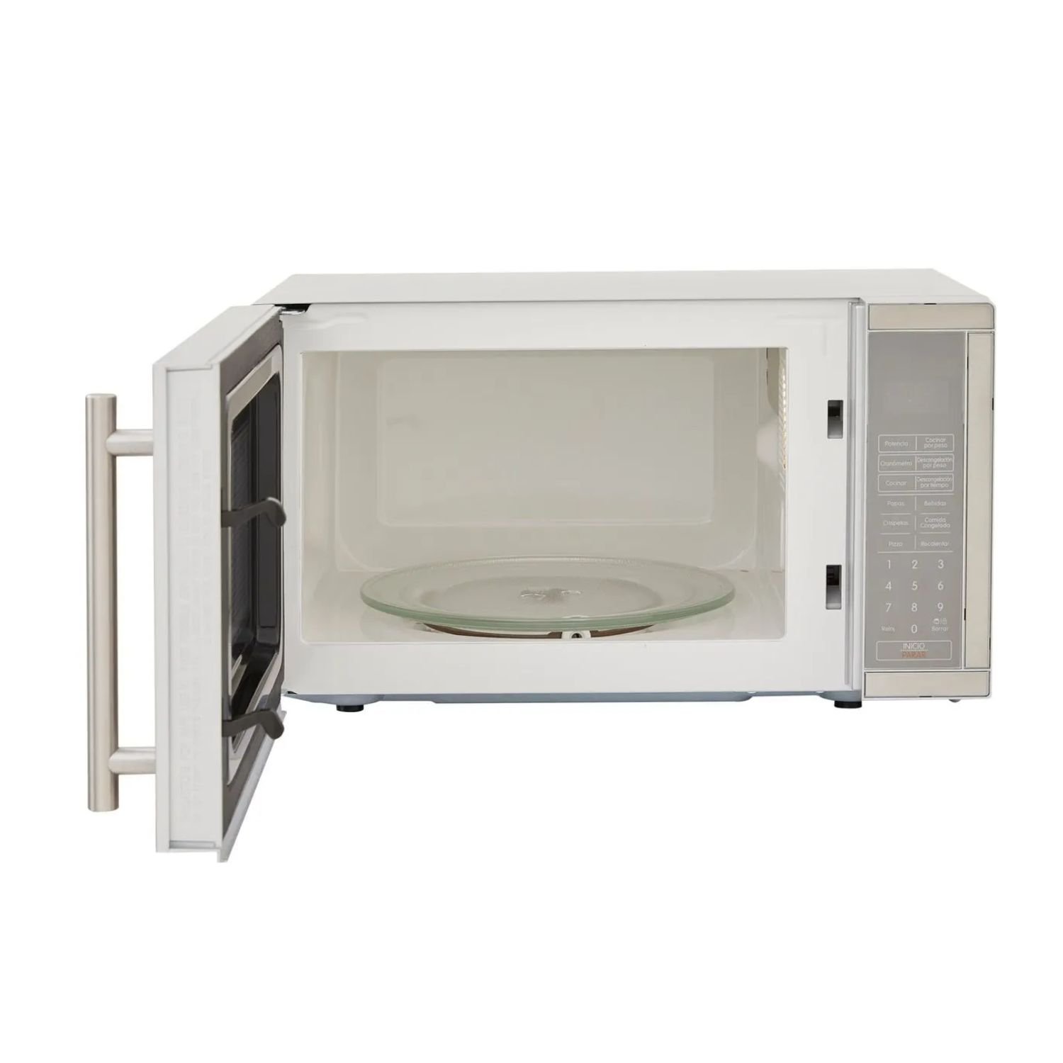 Programas predeterminados; Papas, bebidas, crispetas, comida congelada, pizza y recalentar potencia, cocinar por peso, descongelar por peso, descongelar por tiempo, cronómetro, cocinar.