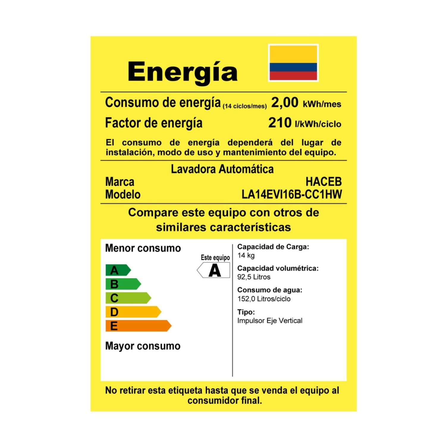• Capacidad Carga Lavado: 14 Kilogramos
