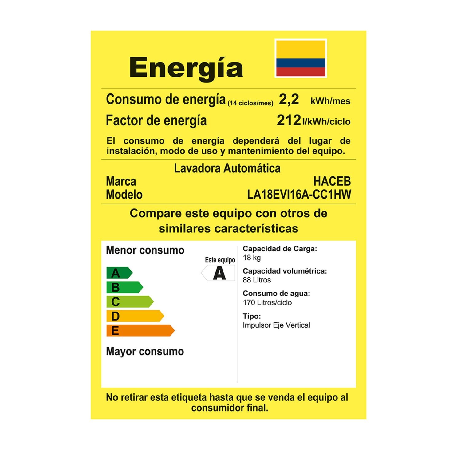 • Capacidad en Kilogramos: 18 kg