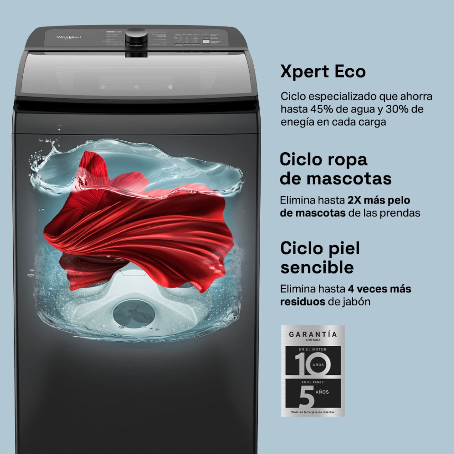 • Depósitos automáticos: Detergente, suavizante y blanqueador