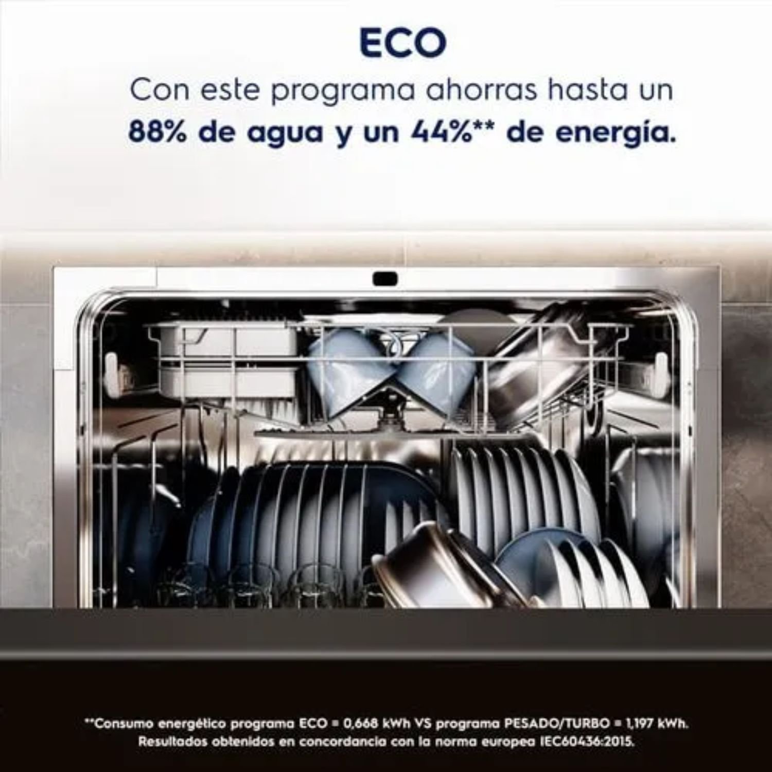 • Programas: Día a Día. Delicado. Higienizar loza 70°C. Express 30 min. Pesado/Turbo. Pre-lavar. Rápido. Eco