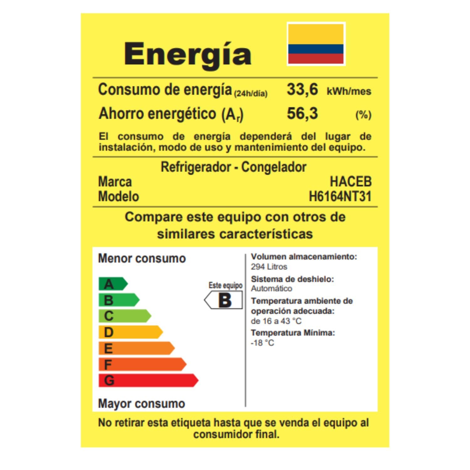 • Tipo consumo energético: B
