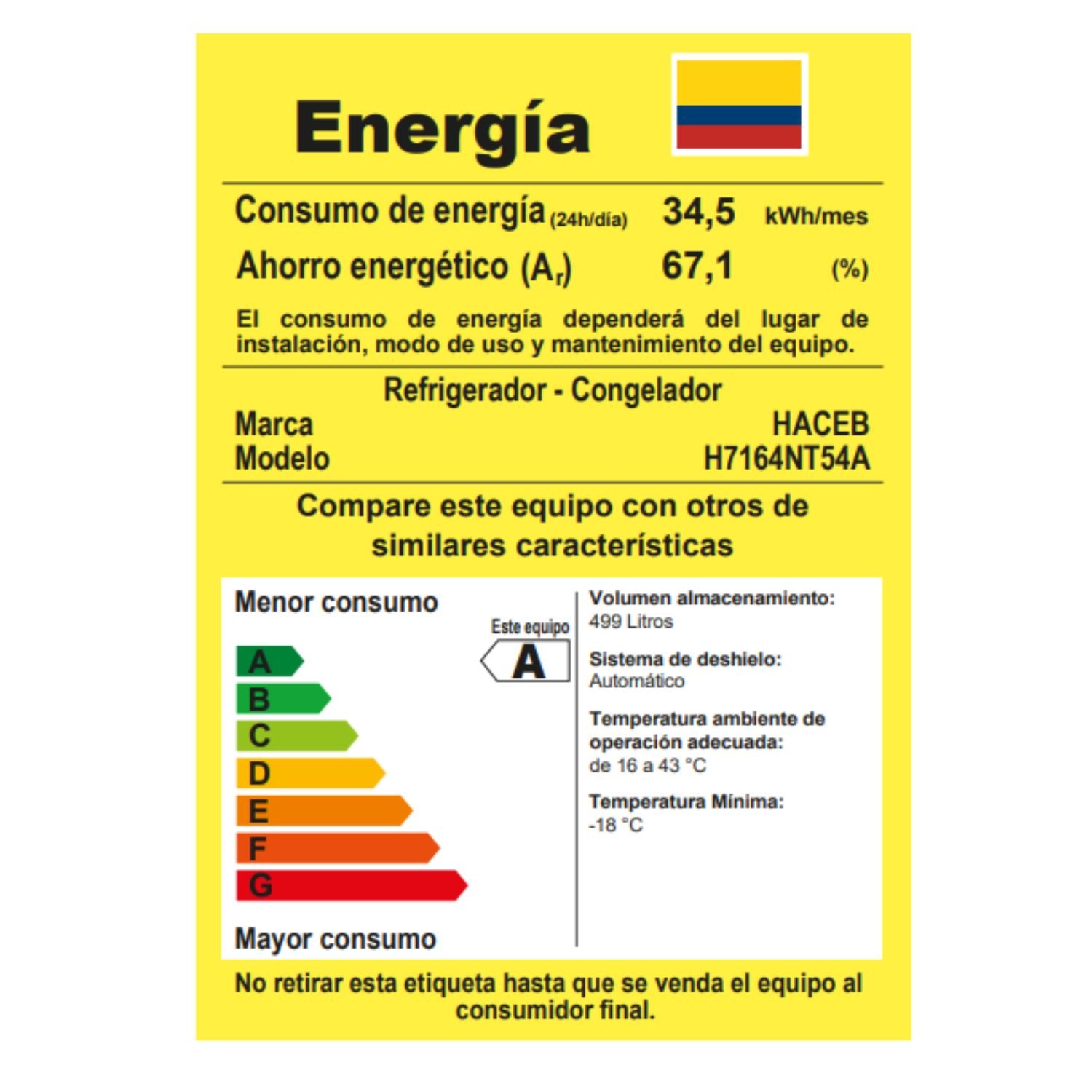 • Capacidad neta en litros: 499 Lts