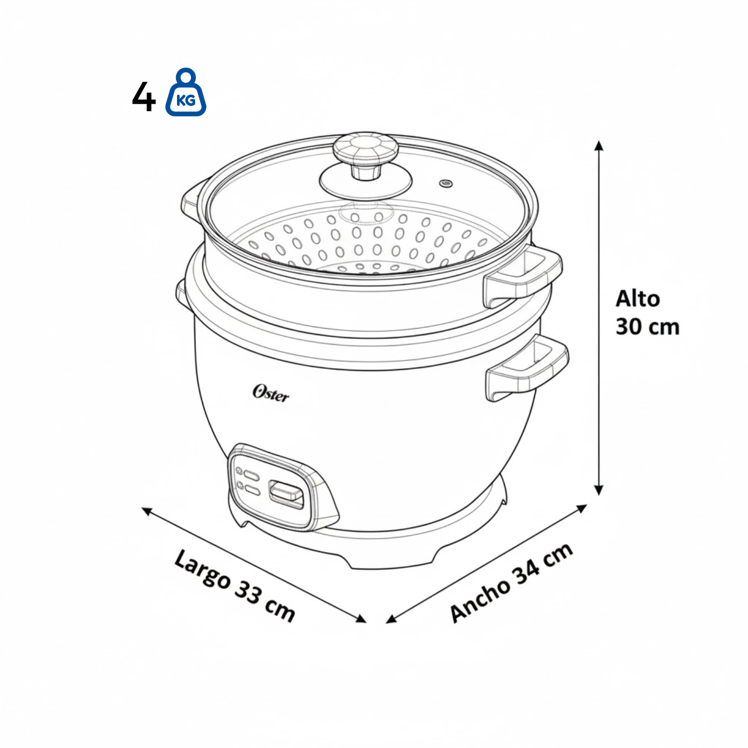 La arrocera multiusos Oster cuenta con una función automática que mantiene el calor y con una bandeja de vapor para que prepares una gran variedad de alimentos. Además, su olla interior extraíble con recubrimiento antiadherente evita que los alimentos se peguen. Preparar tus comidas favoritas ahora es más fácil y saludable gracias a tu multifuncional arrocera multiusos Oster blanca con función de mantener caliente y su bandeja de vapor para que prepares tus vegetales y mucho más. ¡Disfruta de su nuevo diseño ideal para tu cocina!