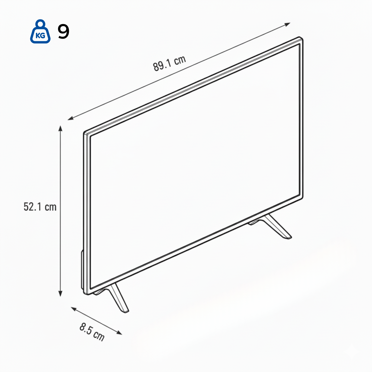 Televisor Android Smart TV de 40″ (101 cm) FHD, TDT, con sistema operativo Android, acceso directo desde desde control a NETFLIX, AMAZON PRIME VIDEO, YOUTUBE. BLUETOOTH de salida de audio y soporte de pared fijo.
