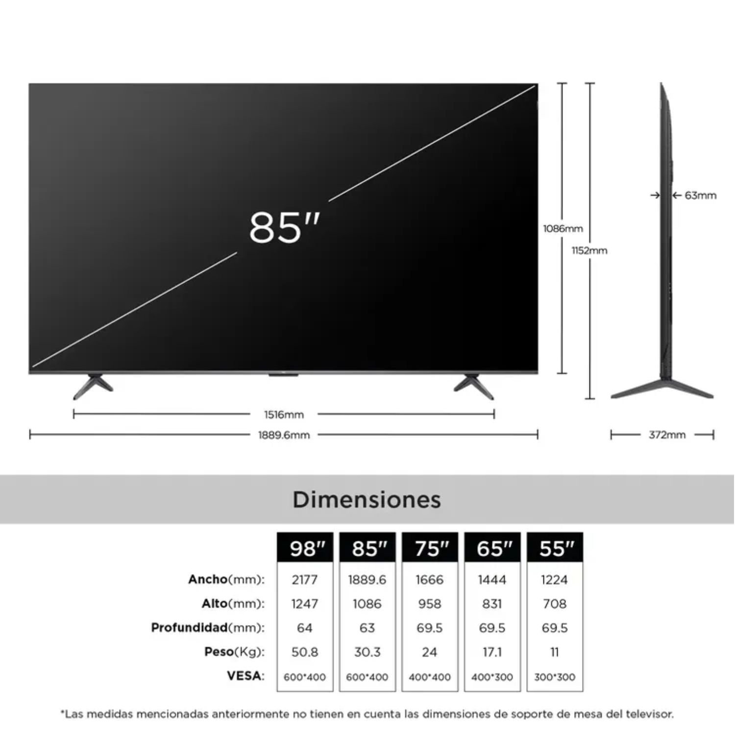 Qué incluye el producto: Incluye Control Remoto Inteligente, Cable de Alimentación y Soporte de Mesa