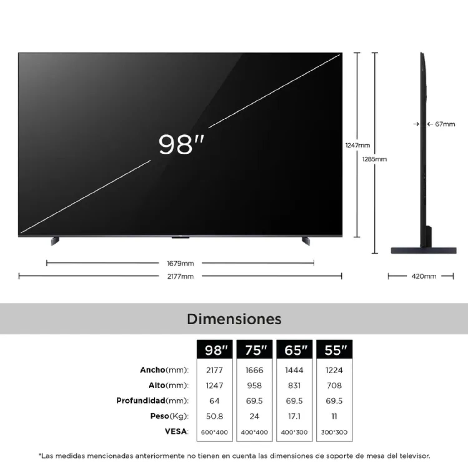 Qué incluye el producto: Incluye Control Remoto Inteligente, Cable de Alimentación y Soporte de Mesa