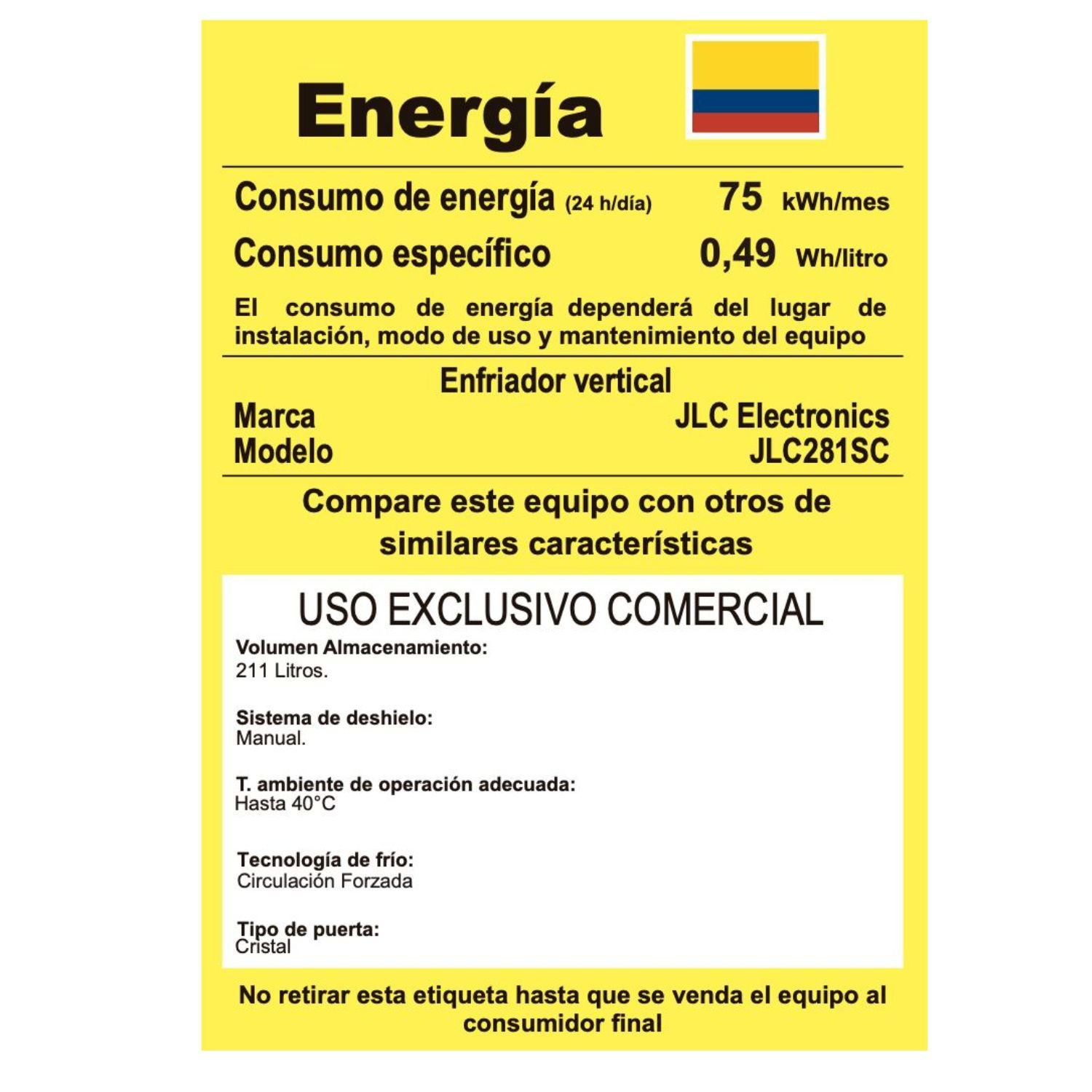 La Vitrina Refrigerada Vertical JLC de 211 litros, modelo JLC-281, es perfecta para negocios que necesitan exhibir y conservar alimentos o bebidas en óptimas condiciones. Su diseño moderno con puertas de vidrio permite una excelente visibilidad de los productos, mientras que el sistema de ventilación interna y el Airflow aseguran una distribución uniforme del frío. Equipada con iluminación LED interna y externa, ofrece una presentación atractiva y eficiente, garantizando además ahorro energético gracias al uso de gas ecológico R600a.